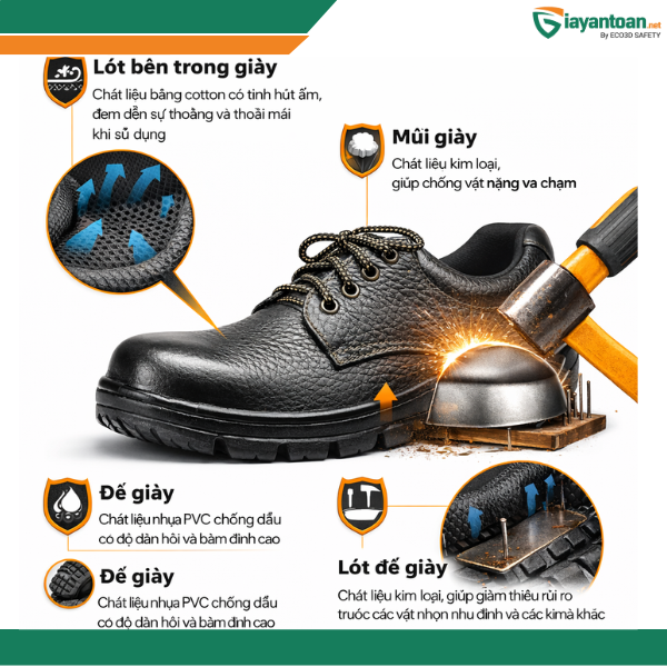 .Mũi giày: Kim loại chắc chắn, giúp chống va đập hiệu quả.