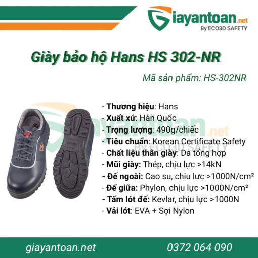 Thông số kỹ thuật của Giày bảo hộ Hans HS 302-NR