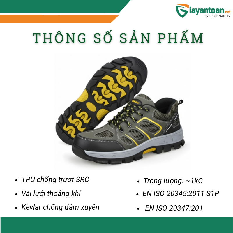Giày mang phong cách sneaker hiện đại, phù hợp sử dụng cả trong môi trường lao động lẫn sinh hoạt hằng ngày, mang lại sự tiện lợi và tính thẩm mỹ cao.