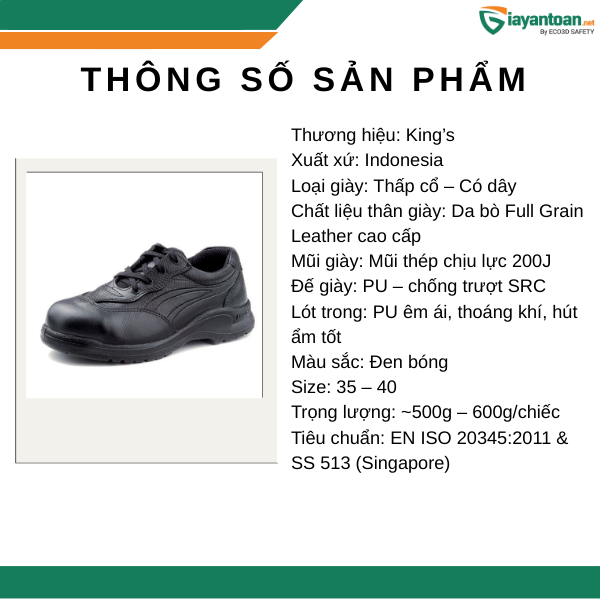 Thông số kỹ thuật Giày Bảo Hộ King’s KL331X