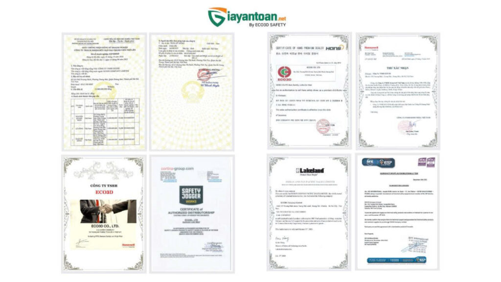 Giấy chứng nhận hợp tác giữa Thương hiệu Giày An Toàn by ECO3D và các thương hiệu nổi tiếng nhất trên thế giới