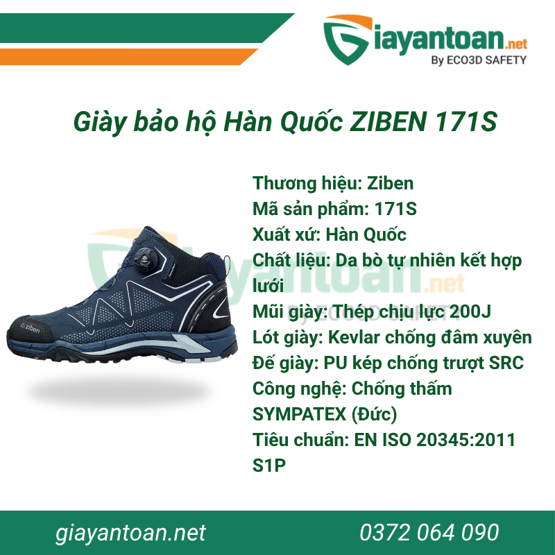 Thông số kỹ thuật của Giày bảo hộ Ziben 171S